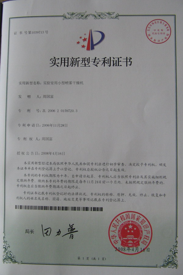 我公司專利產品微型透明干燥機-NOZ-P5玻璃噴霧干燥機,成功應用于核工業北京化工研究院被用于納米級sio2 顆粒噴霧干燥的研究,效果可與國外引進設備相媲美。